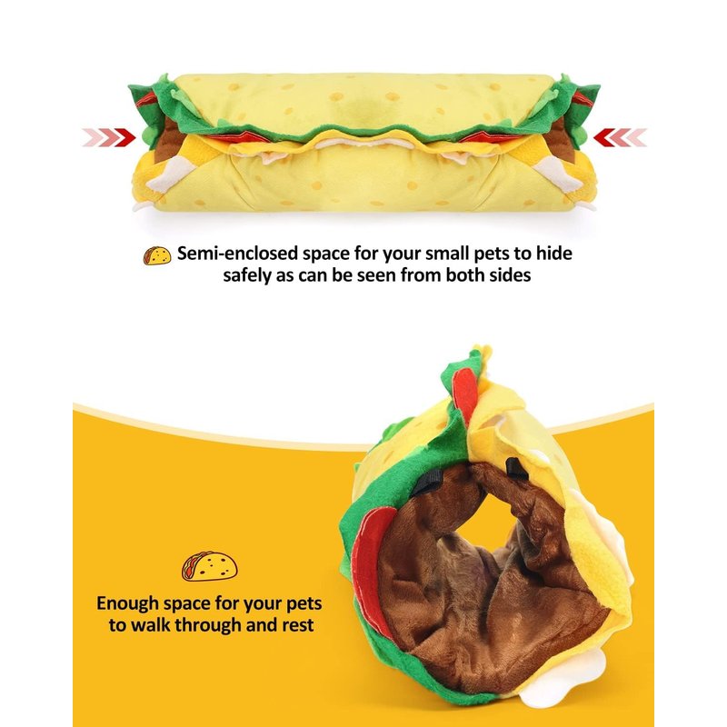 - 🎉More Space for Playing - This Taco hideout is measured about 14"*8.5"*7.5", providing enough space for your pets to walk through, play with toys and sleep inside. Most small animals including guinea pigs, chinchillas, ferrets,rats and other animals with similar size would feel comfortable staying inside.