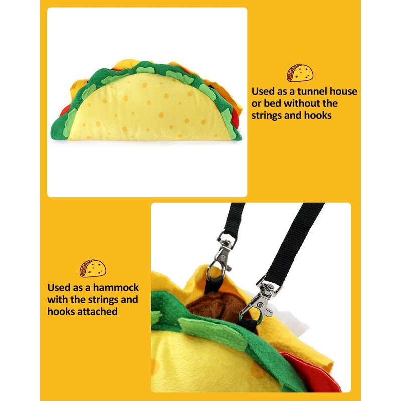 - 🌮Cute Taco Design - The package includes 1 taco tunnel house and 4 adjustable hanging strings with double-side hooks. The taco design includes elements of tomatoes, cheese and lettuce leaves, making it colorful and adorable.