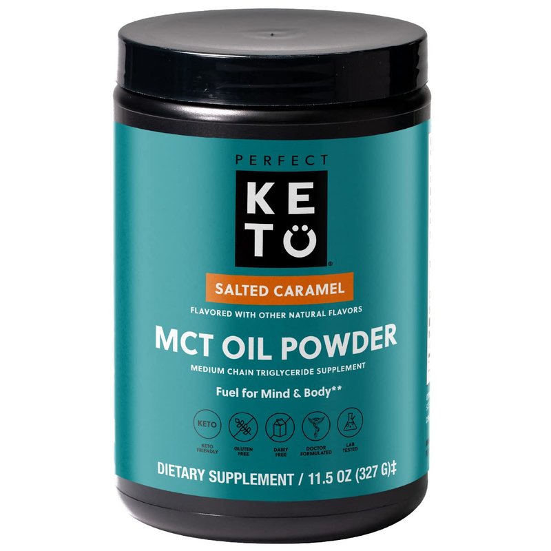 Perfect Keto 7g MCT Oil Powder, Medium Chain Triglycerides Supplement, Non Dairy Coffee Creamer for Keto Diet, Ketogenic MCT Oil Mix for Coffee, Smoothie, Protein Shakes, Salted Caramel, 30 Servings