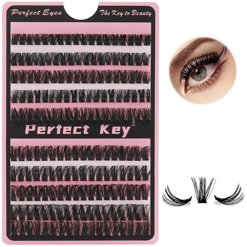 Perfect Key 200 Clusters Natural Look Eyelash Extensions Wispy Lash Clusters D Curl Cluster Lash Extensions 10-18mm 80D-200 Black