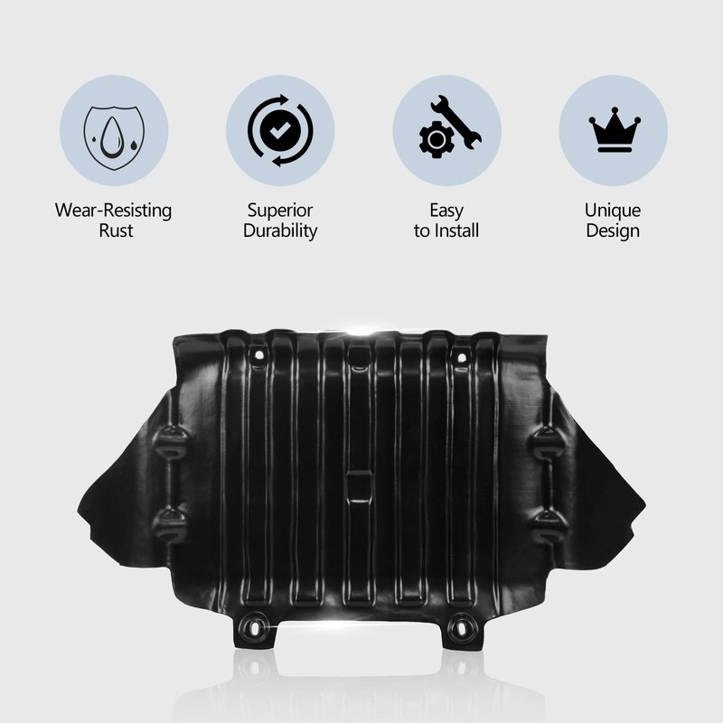 - FEATURES - Black unfinished surface finish, under cover engine splash shield. Perfect fit and direct replacement.