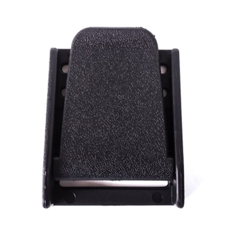- Black nylon bag strap buckle.