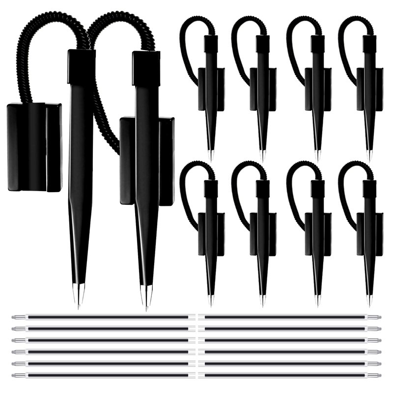 - More Pens: Package includes 12 piece pens with plastic secure cord attached to adhesive back base, with 12 refills sufficient in quantity and convenient for your daily study or work needs, and can also be shared with your friends or colleagues.