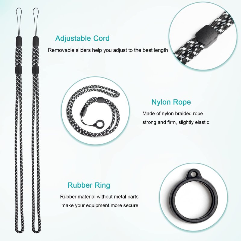 - 【Material】We use durable nylon rope for the necklace lanyards, the bottom is a non-slip rubber ring, which wraps your transfer device to stretch and hold it firmly. No metal accessories, make your device safer, and no more tape residue or skin irritation, so you have a better experience.
