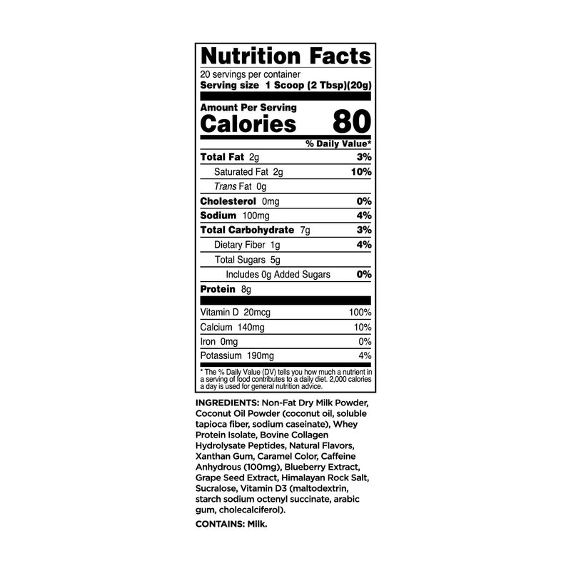 - Protein with Collagen, 0g added sugar, 80 calories.