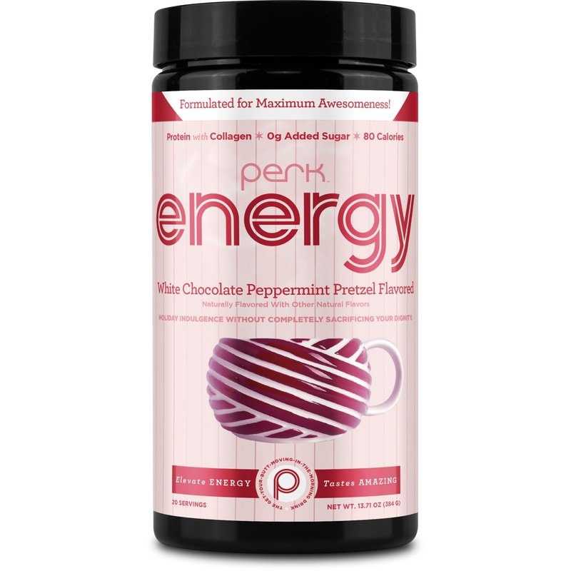 Perk Energy Original White Chocolate Peppermint Pretzel Drink Mix (20 Servings) - Gluten Free, Soy Free, Peanut Free