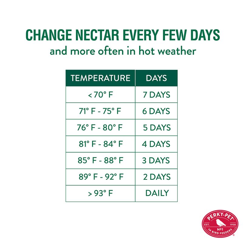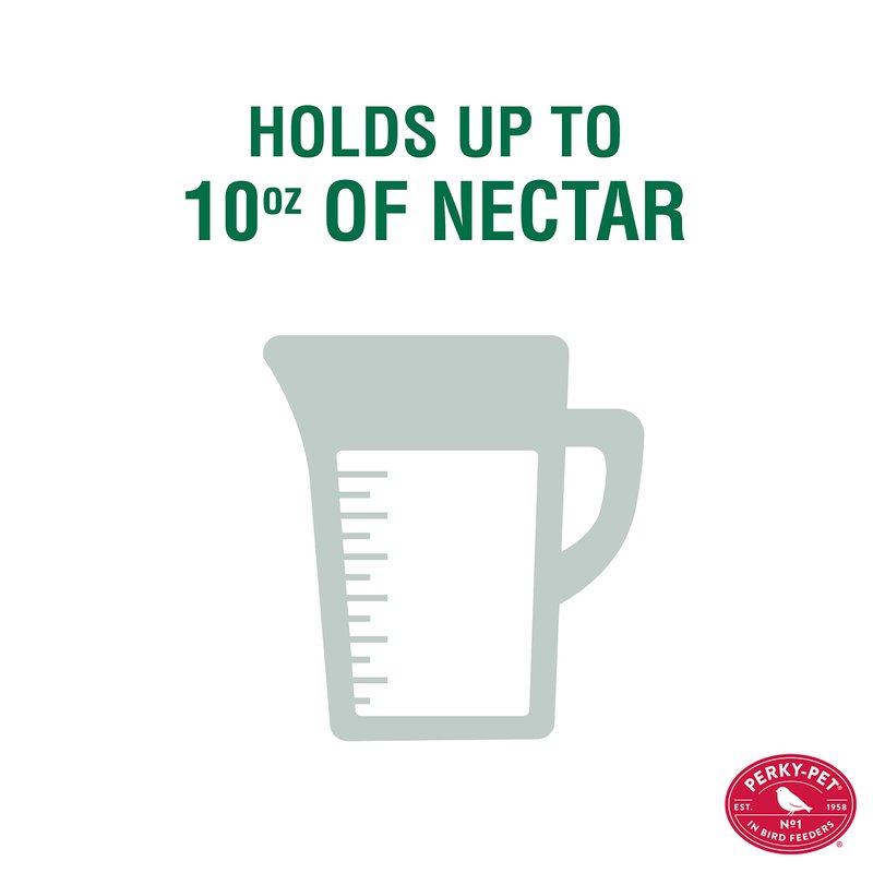 - 10 oz Capacity – This feeder holds up to 10 oz of nectar, ensuring you have the perfect amount of nectar to go around in between cleanings