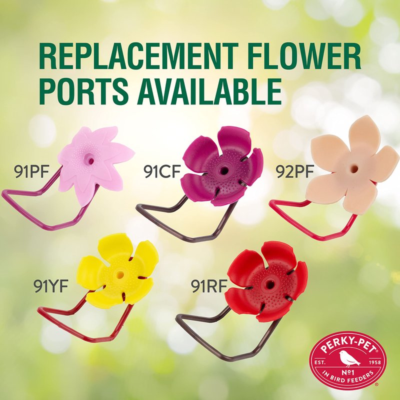 - Keep Insects Out – The flower-shaped feeding ports have a long, tapered stem to keep bees out of nectar
