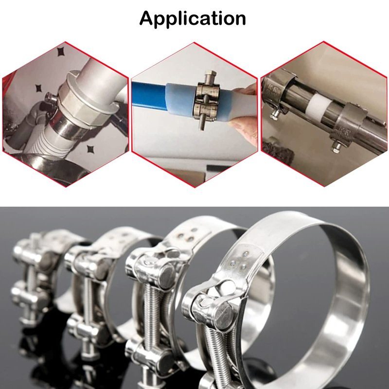 - [WIDE APPLICATION]---T-bolt clamps can be used in a wide variety applications of industrial, automotive and special equipment. Fit for fastening various oil, water, gas hose and various hose interfaces.
