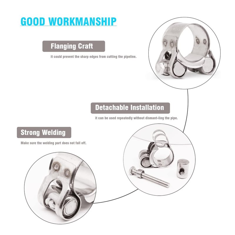 - [EASY TO INSTALL]---Removable installation, silicone hose clamps can be installed without disconnecting the pipe. High hardness and it is not easy to deform, stainless steel screws, large torque.