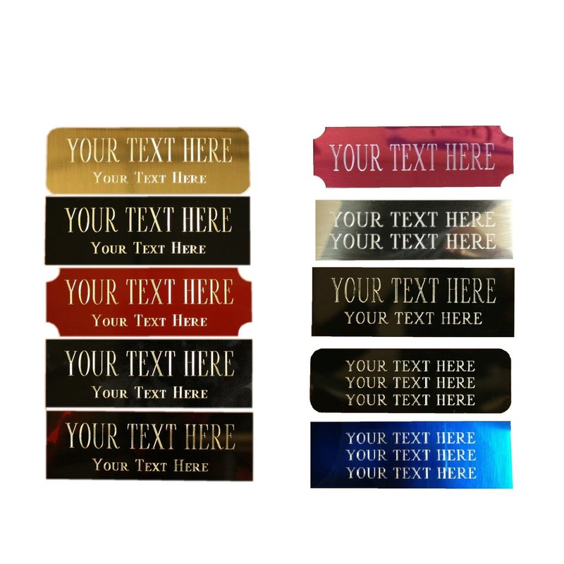 - · You can have up to 3 (for 1x3 inch) or 5 (for 2x4 3x5 4x6 inch) lines of engraving. · ALL ENGRAVING WILL BE SILVER IN COLOR FOR ALUMINUM AND GOLD IN COLOR FOR BRASS! · Each line can have up to 30 (for 1x3 inch) 50 (for 2x4 3x5 4x6 inch) characters including spaces. · You have 12 Available Fonts to select from.