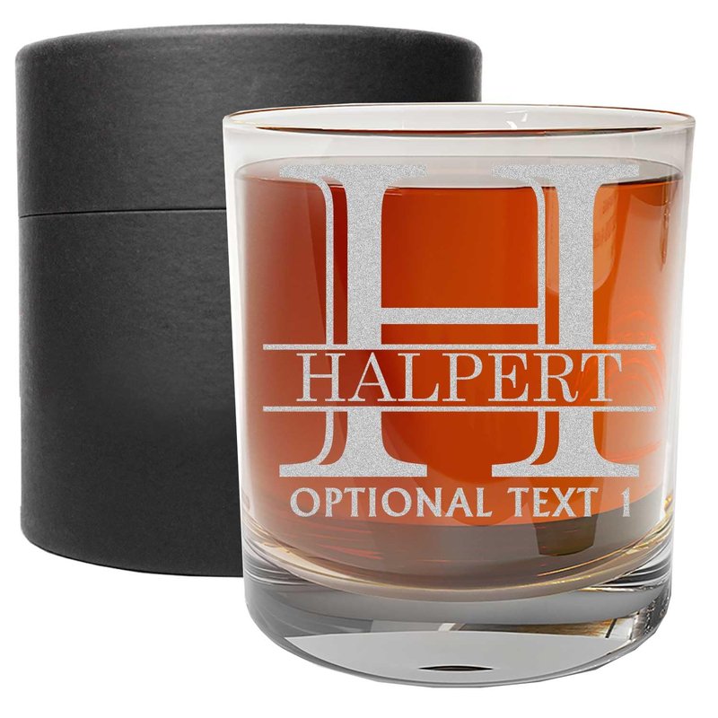 Personalized Etch 11oz Custom Whiskey Glass, Whiskey Gifts for Men, Bourbon Glass Engraved, Birthday Gifts for Men Dad Husband Groomsmen Gifts, Customized Monogram Gifts, Halpert