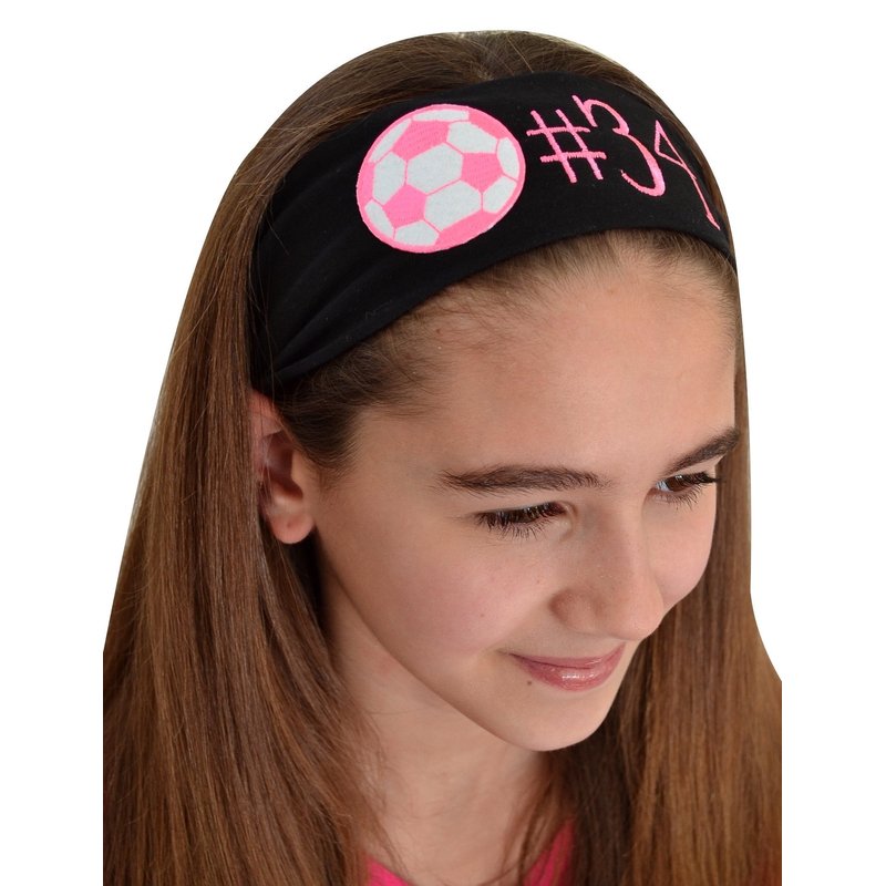 - Black cotton stretch headband featuring the embroidered name or number of your choice