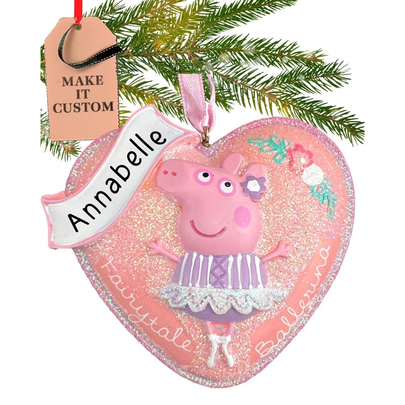 - Celebrate Life’s Biggest Moments – and your family’s imagination. Remember and cherish your children's favorite characters for years to come with this Peppa figurine that will always bring a smile to any kid's face. Crafted with festive details and vibrant colors and personalized to your specifications, these Peppa Pig Christmas ornaments will delight your family and make decorating the Christmas tree even more fun! The perfect addition to your Peppa Pig figure set and Peppa Pig gift set!