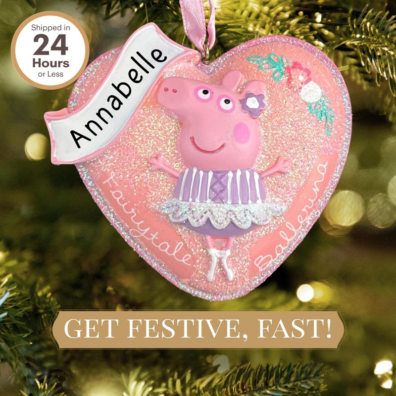 Personalized Peppa Pig Christmas Ornaments 2024 - Fast & Free 24h Customization – Peppa Pig Girls Holiday Keepsake with Name - Comes Gift Wrapped