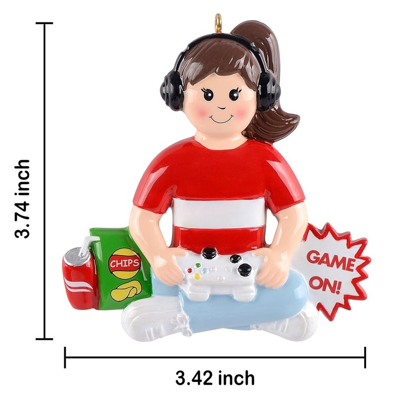 Personalized Video Game Girl Christmas Tree Ornament,Video Gamer Player Ornament,Hand Controller Gaming Christmas Tree Decor, Cool Customized Gifts for Teenagers, Kids, Computer Game Lovers