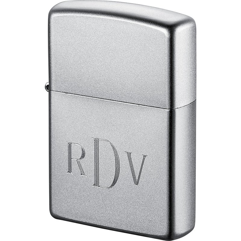 This personalized zippo is engraved with Monogram style of engraving on first line where the initials are entered in First Name, Last Name, Middle Name Initials order. Only three initials are offered on this particular product. Free Engraving makes this product affordable and attractive as groomsmen gift, birthday or anniversary gift.