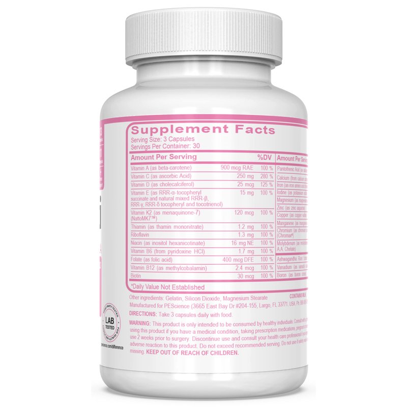 PEScience TruMulti Women's, Multivitamin with Premium Quality Vitamin C, D, Zinc for Immune & Stress Support, 90 Capsules
