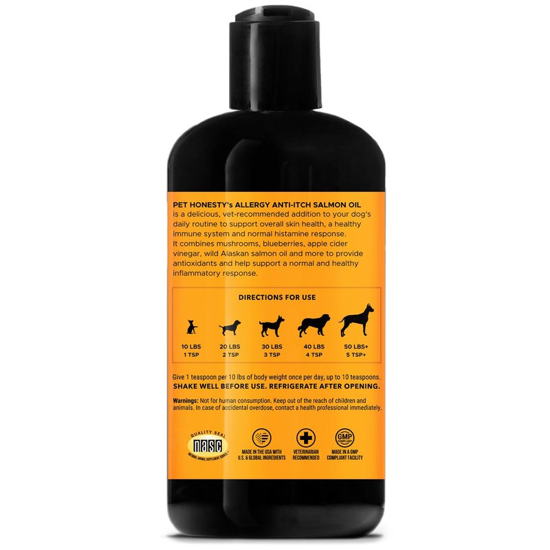 Pet Honesty Dog Allergy Relief Salmon Oil Anti-Itch for Dogs, Itch Relief & Omega-3 for Dogs, Dog Skin and Coat Supplement, May Reduce Normal Shedding & Itching, Joint, Brain & Heart Health (16 oz)