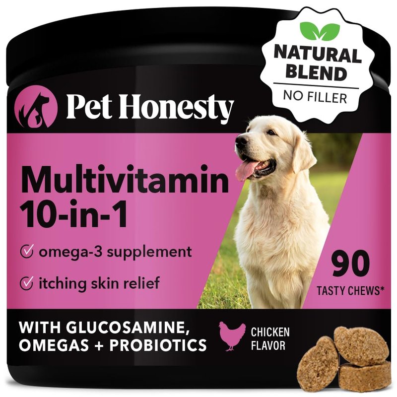 Pet Honesty Multivitamin Dog Supplement, Glucosamine chondroitin for Dogs, Probiotics, Omega Fish Oil, Dog Supplements & Vitamins, Dog Vitamins for Skin and Coat Allergies, (Chicken 90 ct)