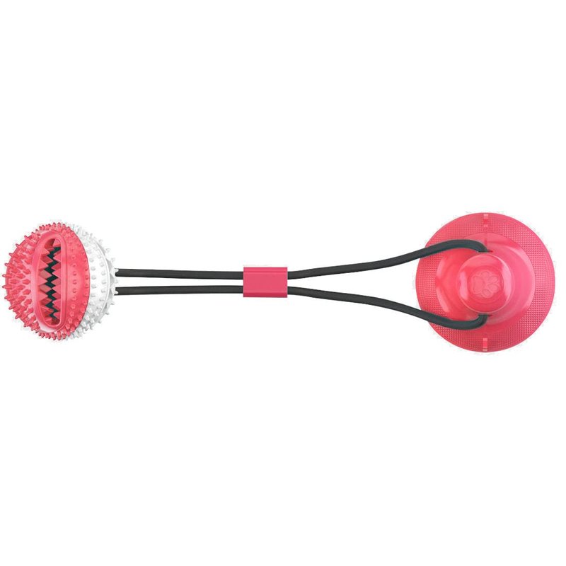The Pet Life 'Grip N' Play' Treat Dispensing Ball Shaped Suction Cup Dog Toy is designed to suction and grip to any and all hard surfaces in a matter of seconds. Features Dual-Rope strings that provide high-range tension and pull-resistancy that is connected to a Rubberized Ball-Shaped Toy containing numerous crevices for placement of Treats and Dry Dog Food for a fun and engaging interactive experience. The Ball Toy further features numerous ridges all around designed to massage gums and clean teeth by removing Plaque and Tartar. The Grip N' Play makes a fantastic self tugging toy that helps build muscle strength along the neck and shoulder areas. Features a large Suction cup on the other end with a pinch-to-release flap for convenient removal off hard surfaces. SIZING DIMENSIONS: (INCHES) L x W x H 16.9 X 2.48 X 2.48