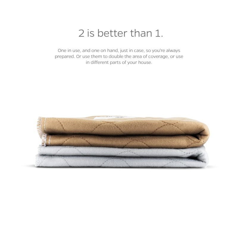- MODERN, NEUTRAL, NATURAL COLORS TO BLEND IN – Who wants to draw attention to the pee pads for dogs in their home? Not us. We didnt think our fellow parents did either so we designed our premium washable pee pads with 1 TAN & 1 GREY pee pad to have neutral and natural colors to blend into their home versus draw unwanted attention and create an eye sore in their home.