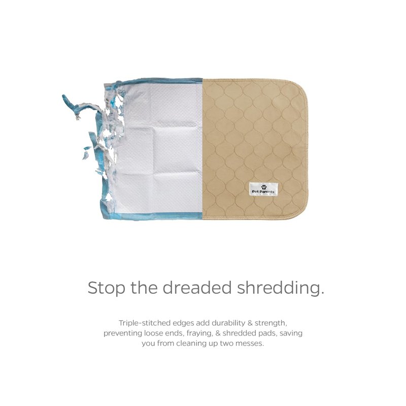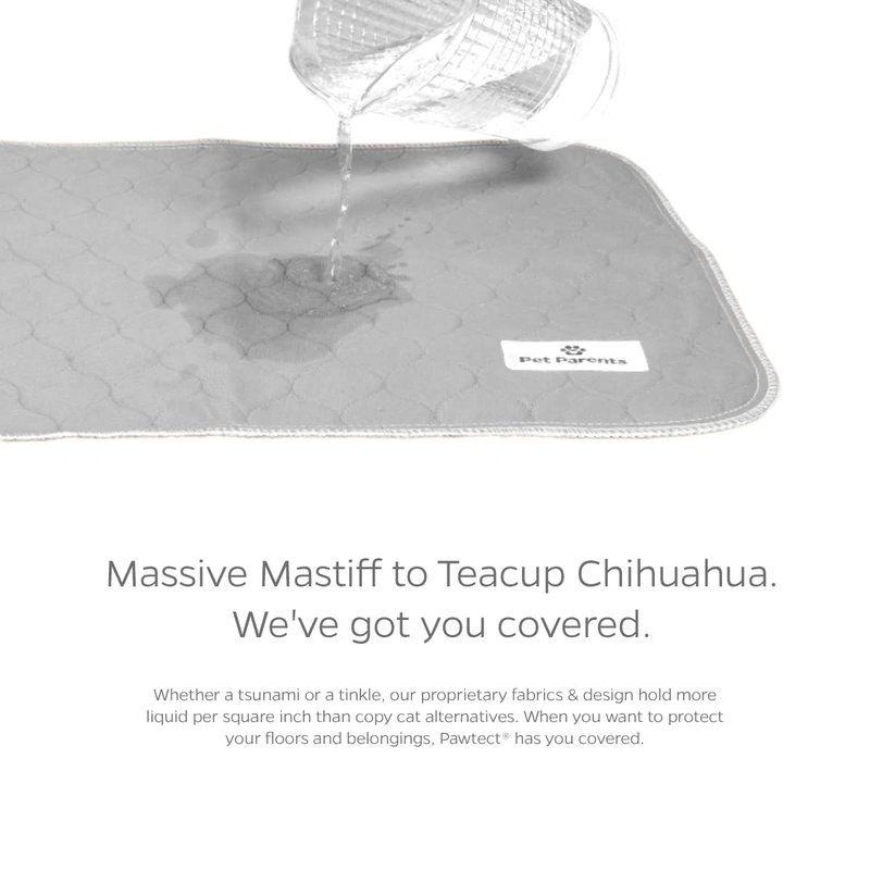 - BEST IN CLASS ABSORPTION & ODOR CONTROL – 2 pack (1 grey & 1 tan) of 18x24" premium puppy pads. Pet Parents Pawtect pee pads for dogs packs in the fluids, whether a great dane or chihuahua, we've got you covered. Our WickQuick proprietary fabric blend quickly wicks, absorbs & holds more liquids per square in than other options on the market. With this technology, our Pet Parents training pads for dogs provide anti-tracking & prevent your furbaby from tracking their mess throughout your home.