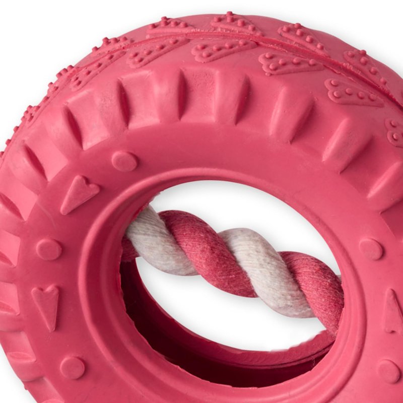 Pet Passion Natural Rubber Tire and Organic Cotton Rope Pull and Chew Dog Toy for All Pet Breeds, Pink, One Size