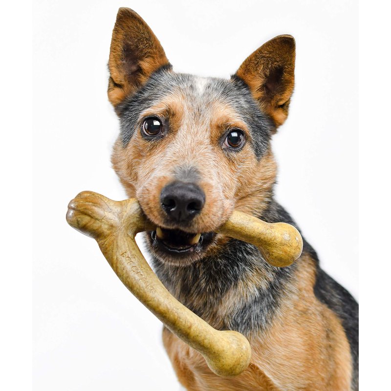 - Made with premium artisan nylon, these dog bones work best for determined & aggressive chewers. Pet Qwerk BarkBone chewing style varies by material, for moderate chewers look for BarkBones made of Wood.