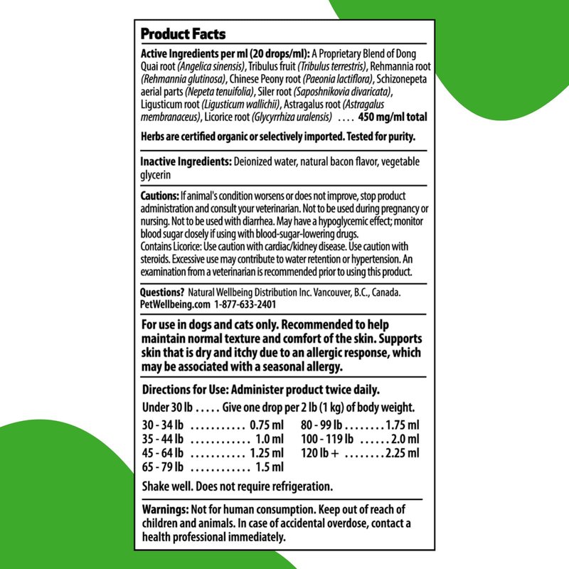 Pet Wellbeing Itch Support Gold is a vet-formulated blend of nine herbal ingredients for allergy-related skin issues. Itch Support Gold works with the principles of Veterinary Traditional Chinese Medicine to address the root causes of the uncomfortable, and sometimes unbearably, itchy skin, including on the paws, that your dog may experience. This formula targets the underlying imbalances to help restore comfort and maintain healthy skin from the inside out.