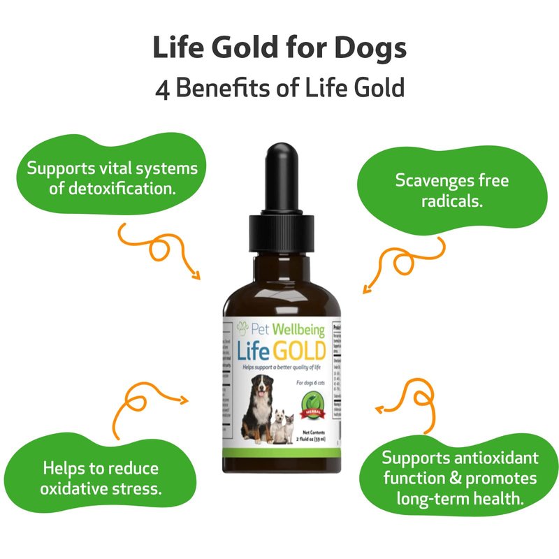 - ✅ PROTECTION. Life Gold herbal ingredients provide antioxidant support that help protect your dog from oxidative stress due to free-radical damage. Ongoing damage to healthy cells can impair immune function and make your pet more vulnerable to chronic conditions.