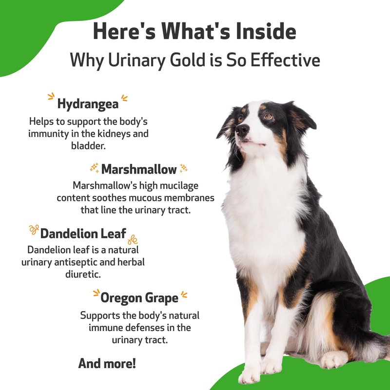 - ✅ GENTLE. When your dog requires support, Urinary Gold is a safe, gentle, and effective way to naturally help maintain their urinary tract health.