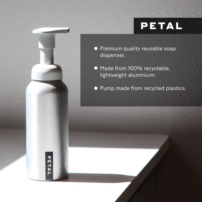 This foaming soap dispenser starter kit includes everything you would require for sustainable hand-washing! It’s sharp look would make it a great soap dispenser for kitchen sink or bathroom. Our bottle is made of 100% recyclable lightweight aluminum with a pump made from recycled plastics. Included in the kit are also 4 soap refill pods that dissolve completely in water so there is no mess and no trash. This zero waste soap dispenser kit keeps your hands clean and the planet, it is a must-have for those who love using sustainable products!