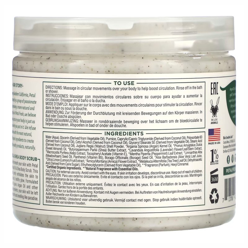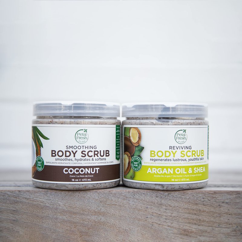 Petal Fresh Argan Oil & Shea Body Scrub, Pure Reviving, Natural, Gently Exfoliating, Daily Skincare, Vegan and Cruelty Free,16 oz