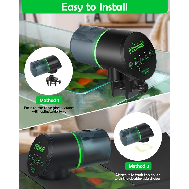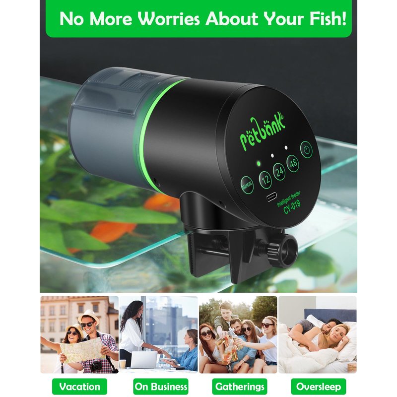 Petbank Automatic Fish Feeder for Aquarium - Auto Fish Food Dispenser Rechargeable for Fish Tank Vacation Fish Feeder Timer with USB Charger Cable (CY-019 Black)