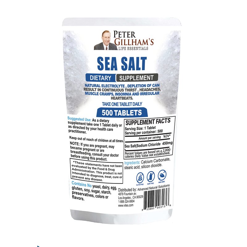 Peter Gillham’s Sea Salt, Sodium Chloride 450mg, Essential Electrolyte Support & Balance, Rapid Hydration & Muscle Cramp Relief, Intermittent Fasting, Keto & Paleo Friendly, 500 Tablets, Made in USA