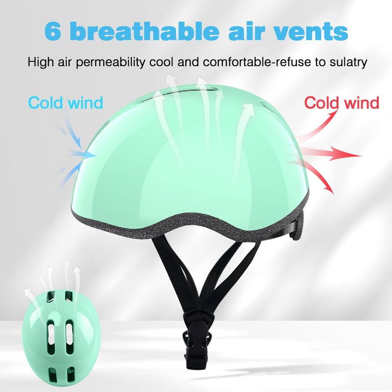 • AWESOME VENTILATION: Designing with 6 Air Vents to keep air circulation, which is more comfortable and breathable. This kids helmets help reduce sweating and keep your kid's head cool and dry during intense body movement.