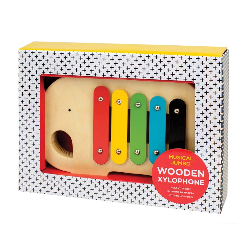 - MUSICAL TOY – The Modern Elephant Wooden Xylophone from Petit Collage is the perfect music toy to introduce children to sound and music. The five brightly colored metal bars produce five sweet notes.