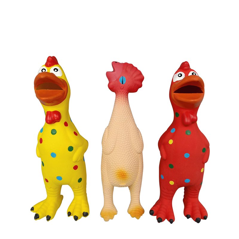 - ATTRACTIVE LATEX TOYS: Three Different chickens with bright color, when you squeeze the chicken or your dog chews it, the sound will attract them, your dog will love to play with it.
