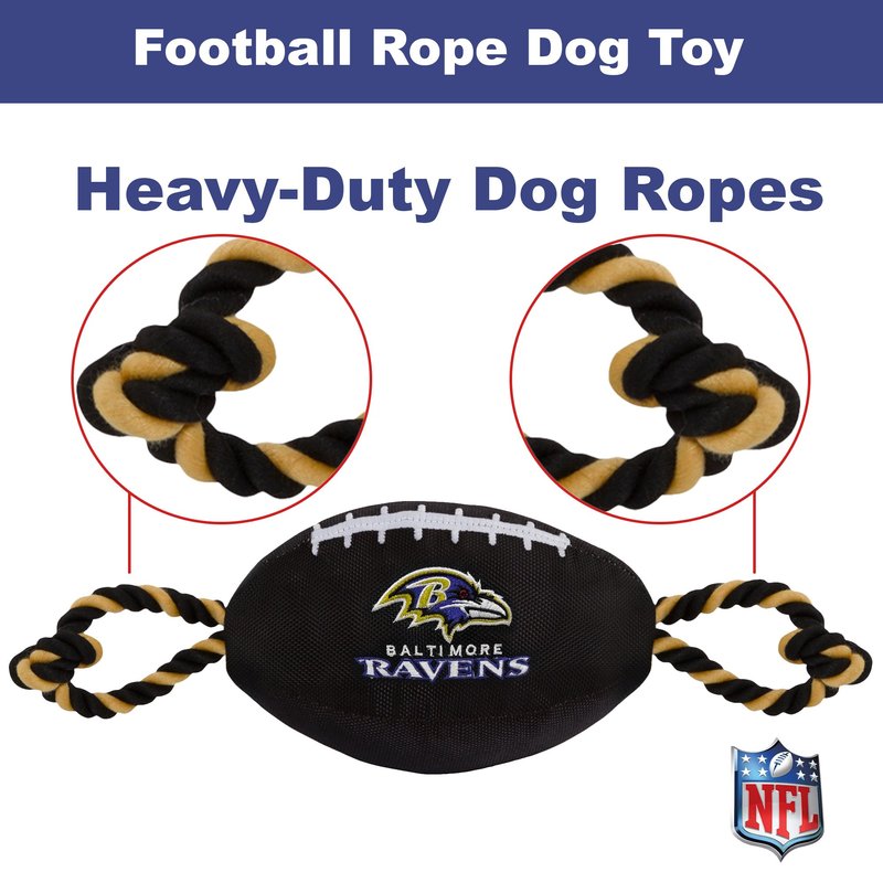 Pets First NFL Baltimore Ravens Football Dog Toy, Tough Quality Nylon Materials, Strong Pull Ropes, Inner Squeaker, NFL Team Color