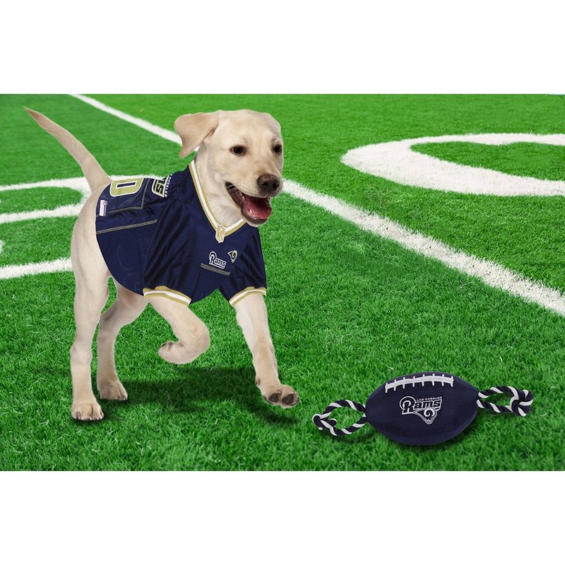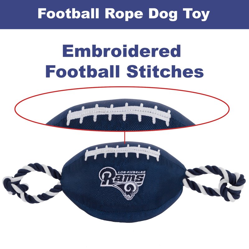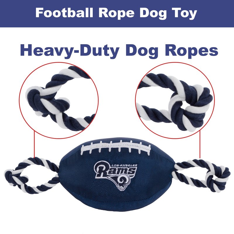 Pets First NFL Los Angeles Rams Football Dog Toy, Tough Quality Nylon Materials, Strong Pull Ropes, Inner Squeaker, NFL Team Color