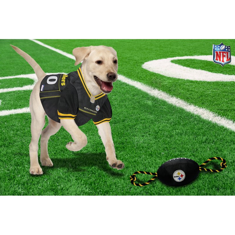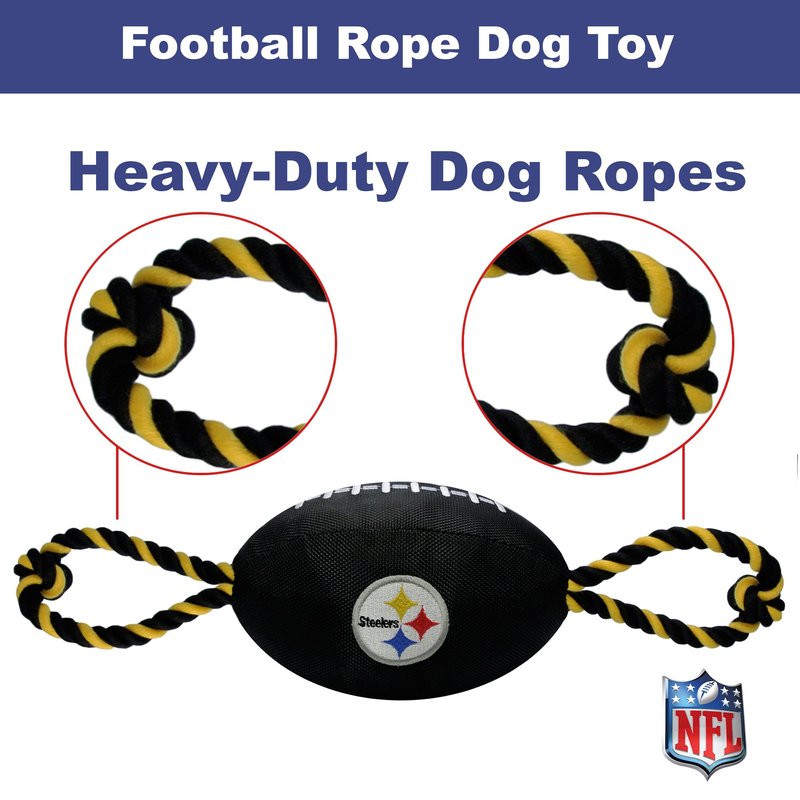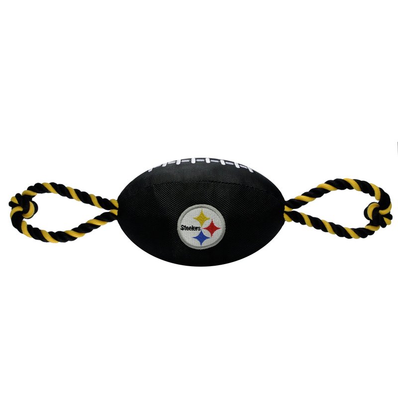 Pets First NFL Pittsburgh Steelers Football Dog Toy, Tough Quality Nylon Materials, Strong Pull Ropes, Inner Squeaker, NFL Team Color