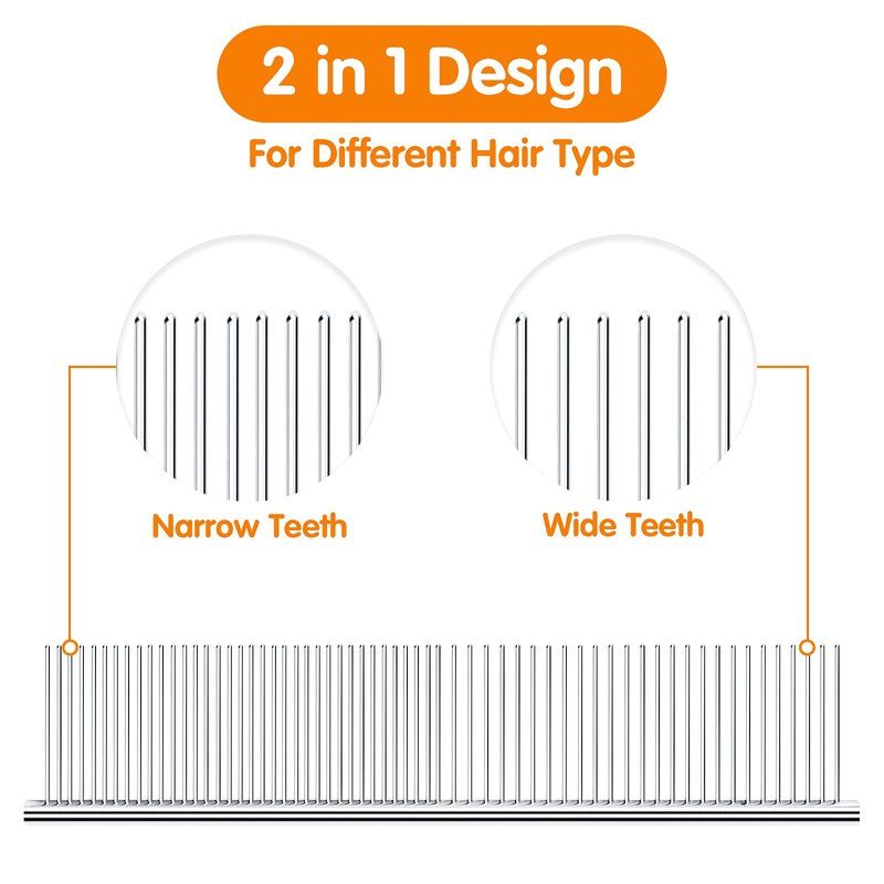 - EFFECTIVE DEMATTING TOOL -This dematting comb for dogs can easily remove knots, mats, and loose hair from your pet's coat. Our cat combs have two different densities of wire teeth. Wide teeth can be used for combing knotted fur, while close teeth are ideal for brushing soft hair around the eyes, ears and fine hair on the legs.