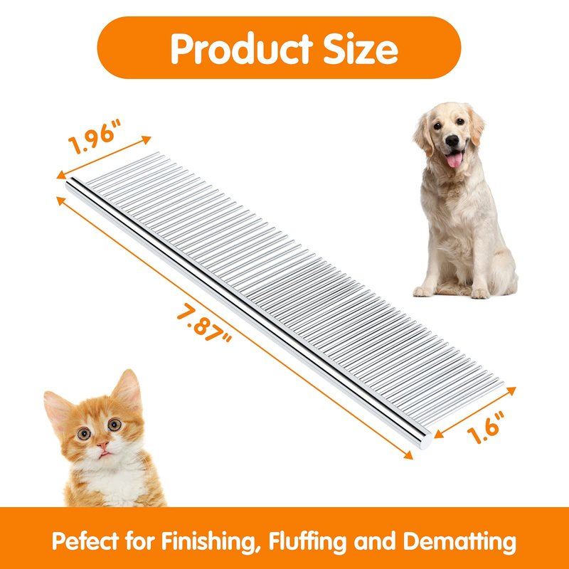 - QUALITY MATERIALS -Steel Pet Comb ideal for cats and small medium large dogs, Made of sturdy and corrosion-resistant stainless steel, this dog comb teeth is smooth, durable and will not fade, also benefit for avoiding static electricity when used.