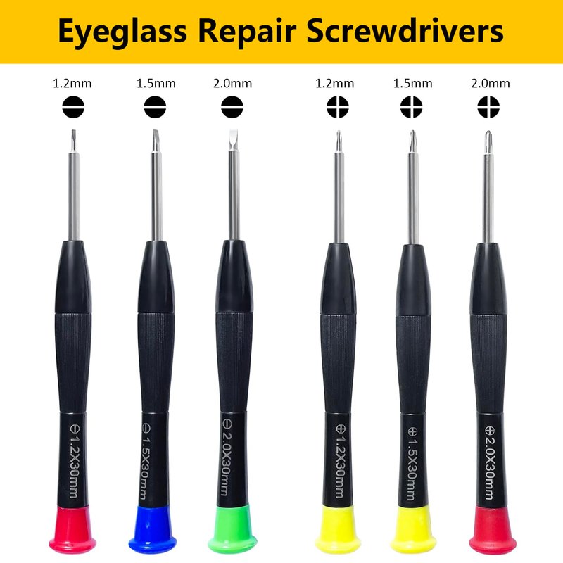 - Premium Quality Tools: The eyeglasses screwdriver set consists of 6 screwdrivers for glasses, with 3 being Phillips and 3 being flathead. Our repair set offers the appropriate tools for fixing any kind of eyeglasses screws. Regardless of the size of the screws, you will possess the required screwdrivers to handle any repair job.