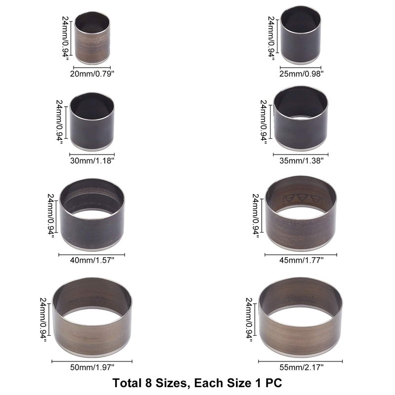 Specification: Quantity: 8 pcs/set Color: stainless steel color. Material: High Carbon Stainless Steel Size: 20: 20x20x0.71mm, 1pc; 25: 25x25x0.71mm, 1pc; 30: 30x30x0.71mm, 1pc; 35: 35x35x0.71mm, 1pc; 40: 40x40x0.71mm, 1pc; 45: 45x45x0.71mm, 1pc; 50: 50x50x0.71mm, 1pc; 55: 55x55x0.71mm, 1pc. Customer support: If you have any problem with our product, you can click on the "Seller Contact" button in your Amazon account to send us an email. we will be happy to help you and we will reply as soon as possible.