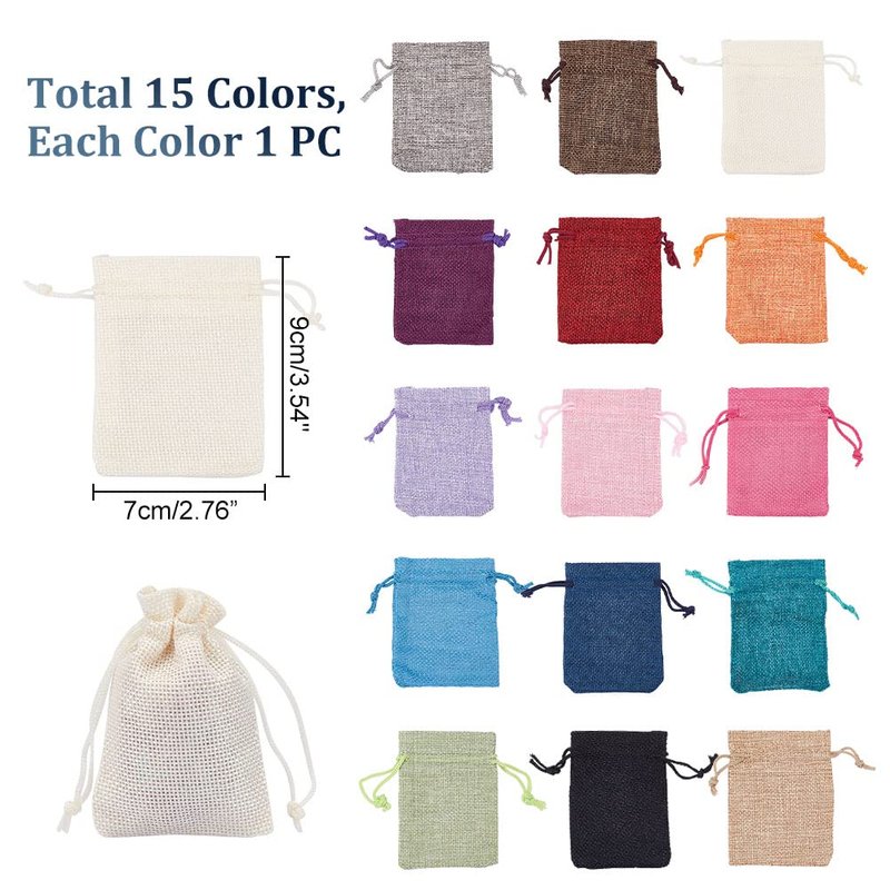 PH PandaHall 15 Color Burlap Gift Bags Packing Pouches Drawstring Bags 2.7x3.5'' Small Cloth Gift Bags Packing Storage Linen Jewelry Pouches for Wedding Party Shower Birthday Xmas Jewelry