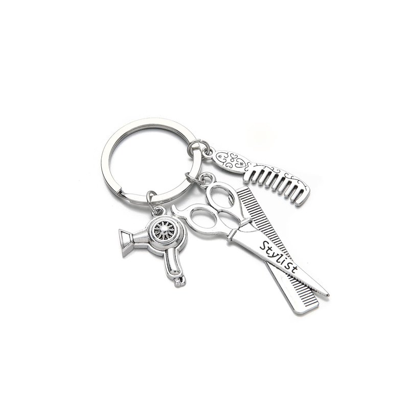 Hairdresser Hair Dryer,Scissor,Comb Charm Pendant Keychain Keyring,Perfect for Salon Owner,or Hair Stylist Gift Jewelry Graduation Gift