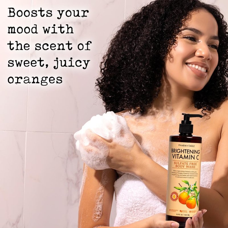 PHARM TO TABLE Brightening Vitamin C Body Wash for Women and Men - Brightens and Nourishes the Skin, Sulfate Free, 100% Cruelty Free, 480ml