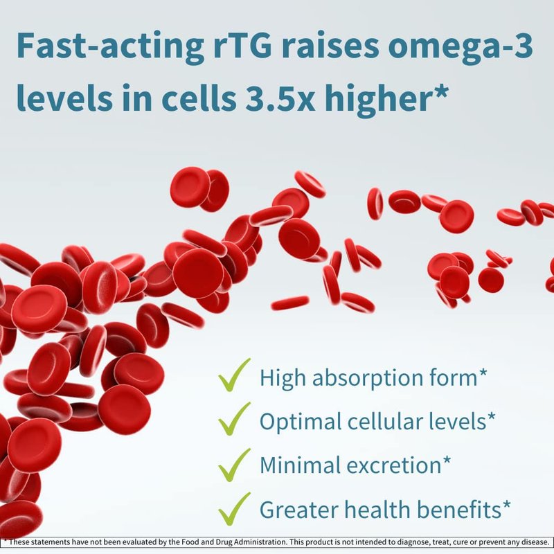 - HIGH ABSORPTION rTG OMEGA-3 FORM: re-esterified triglyceride is the most absorbable form of omega-3, raising omega-3 levels in cells 3.5x higher than standard triglyceride*